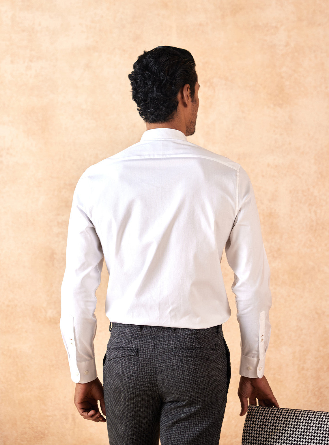 Presenting a timeless evening shirt, in a classic white color. Made from a rich Indian cotton, in an oxford weave that adds sharpness & depth to the fabric. Features a mandarin collar & Rajan, the mark of Andamen.