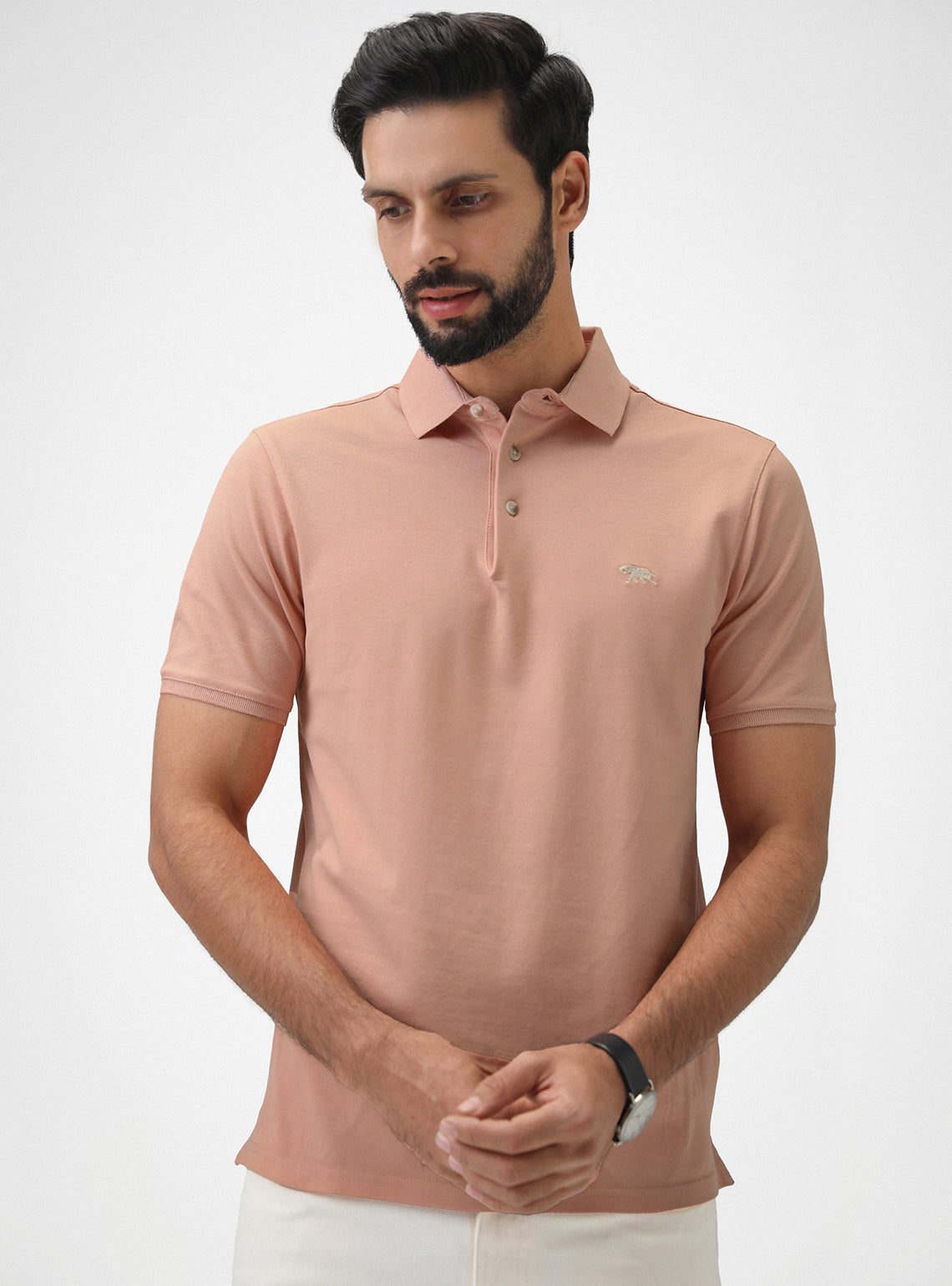 This polo is meticulously crafted from a blend of cotton in a pique weave, ensuring comfort and breathability. Designed in a half-sleeve silhouette, it not only provides sophistication but also features a gold finish, & Rajan, the mark of Andamen.