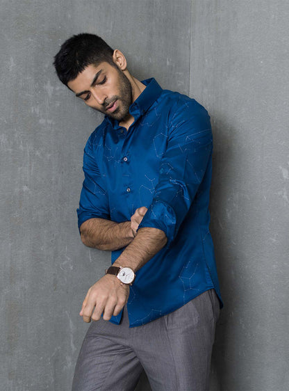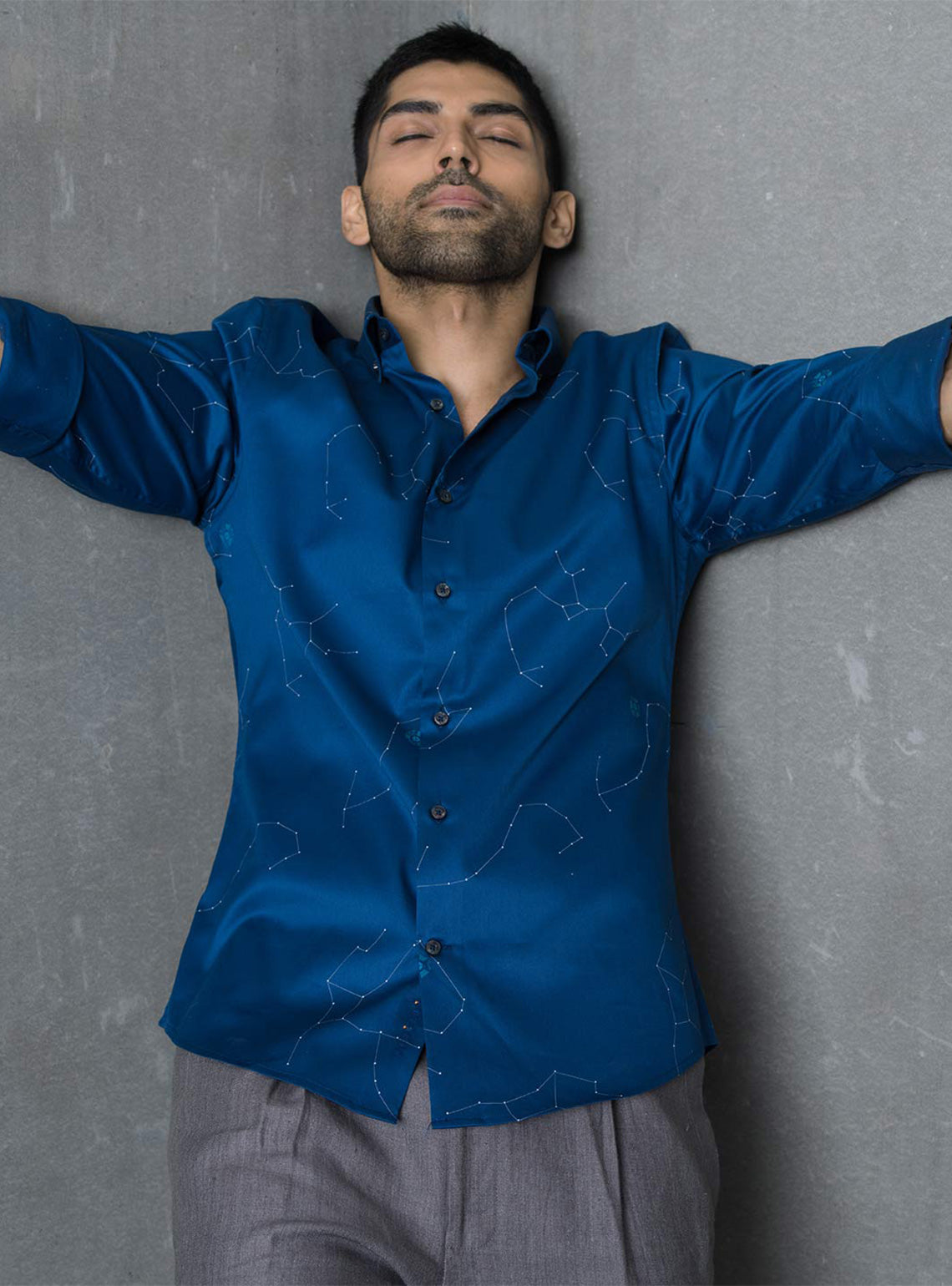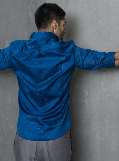 There are 13 zodiac constellations in the sky. Spot four of them shining brightly on this evening shirt. Made in a signature Egyptian Giza fabric that brings out the vividness of the night sky.