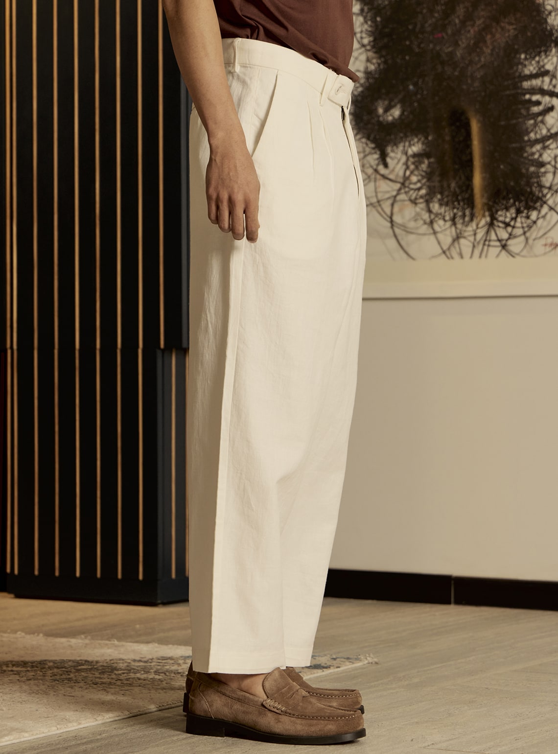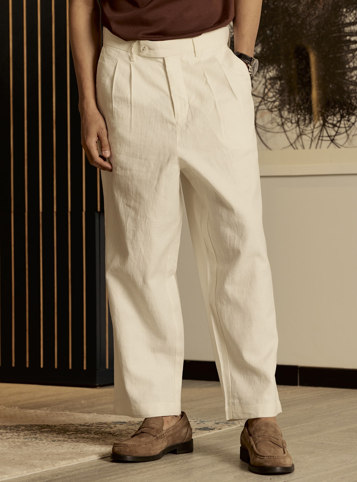path:"/products/off-white-linen-blend-pleated-trousers",