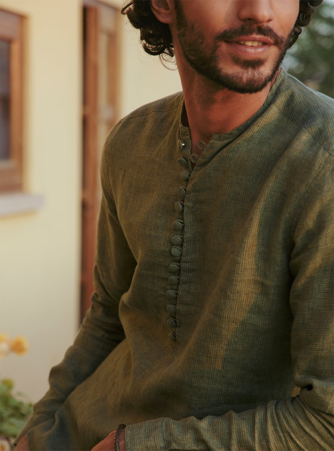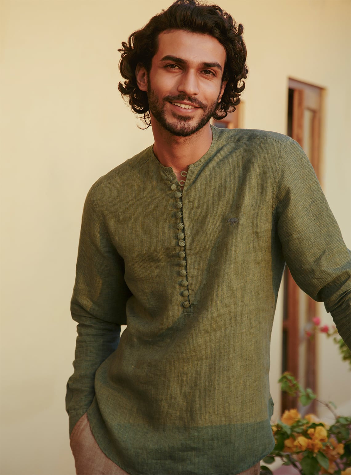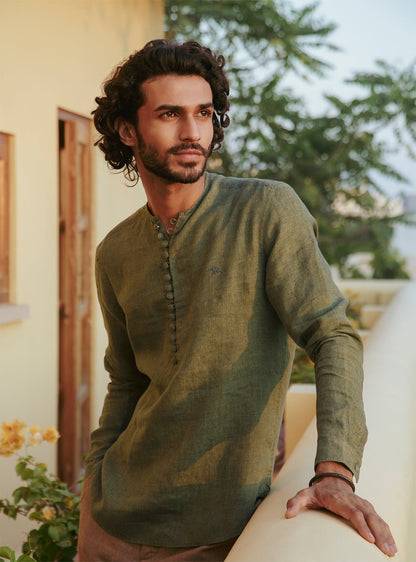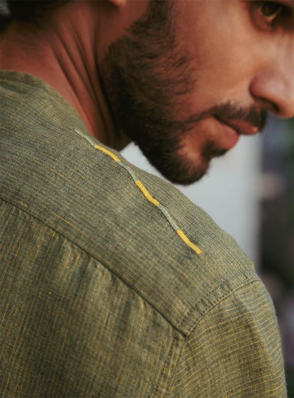 This shirt is crafted entirely from the finest linen, grown on the coastal band of Western Europe, this natural fibre is fully compostable, requires zero manual irrigation and comes from a no-waste plant. The oceanic climate and the mineral-rich soil also go a long way in making this one of the best quality linens in the world. Features placement embroidery.