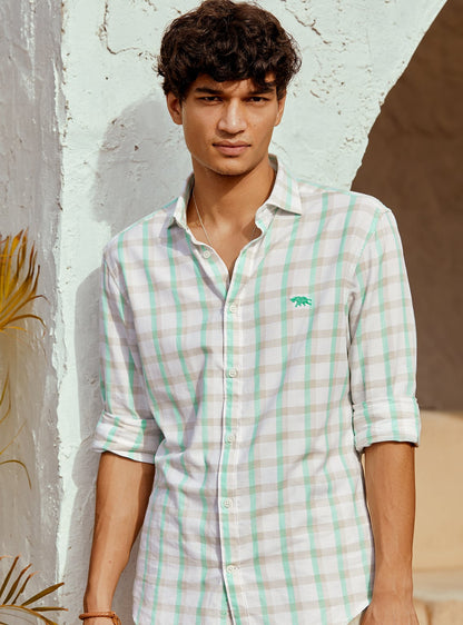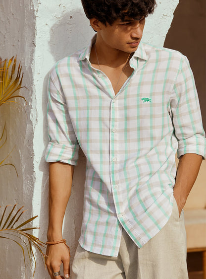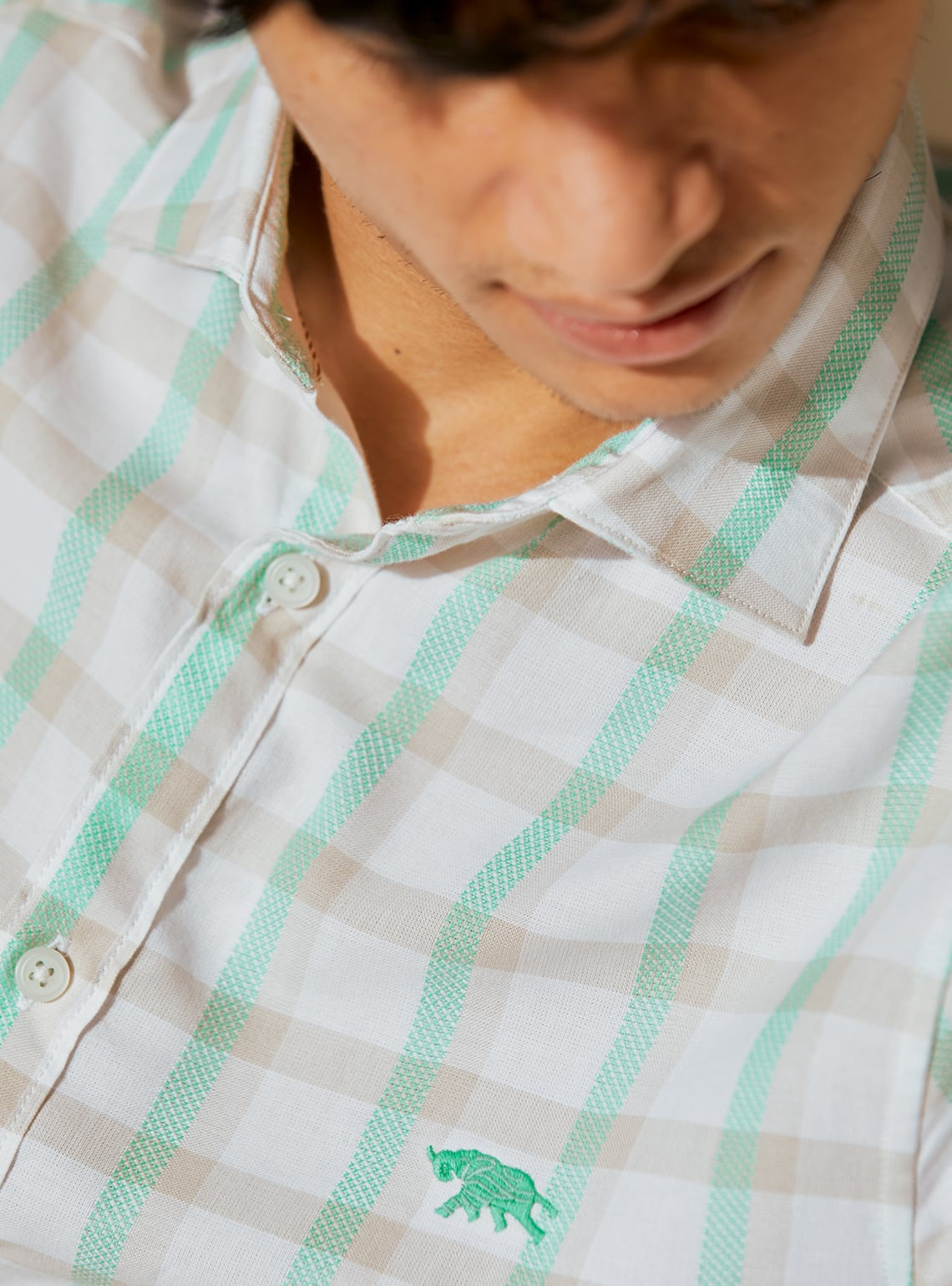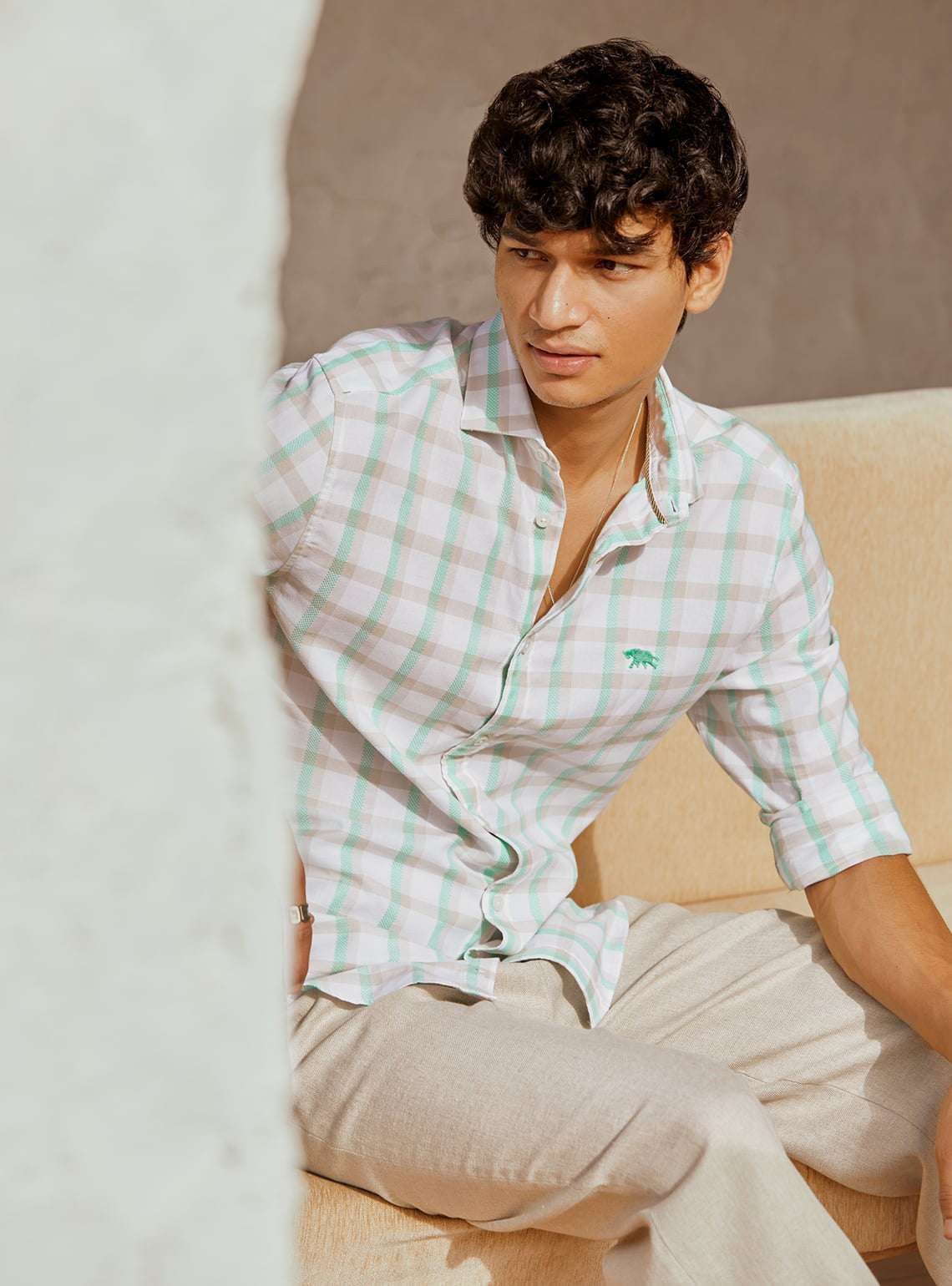 Timeless, Comfortable & Breezy in every sense of the word. Presenting a casual shirt, made entirely from a rich Indian cotton in a plain weave. Features a narrow cutaway collar & Rajan, the mark of Andamen.