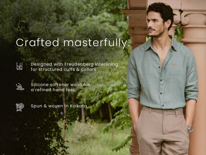 Made from 100% European linen, these trousers combine ease with intention. The fabric—woven from Belgian flax that grows with rainwater alone—is naturally breathable, soft, and built to last.