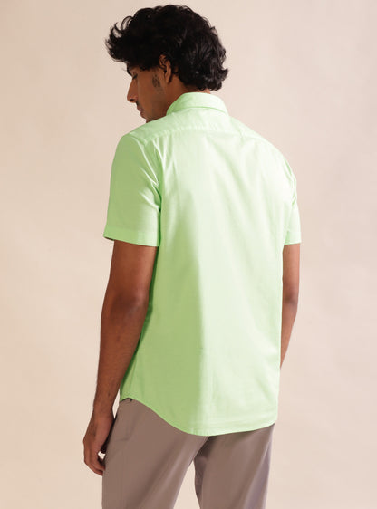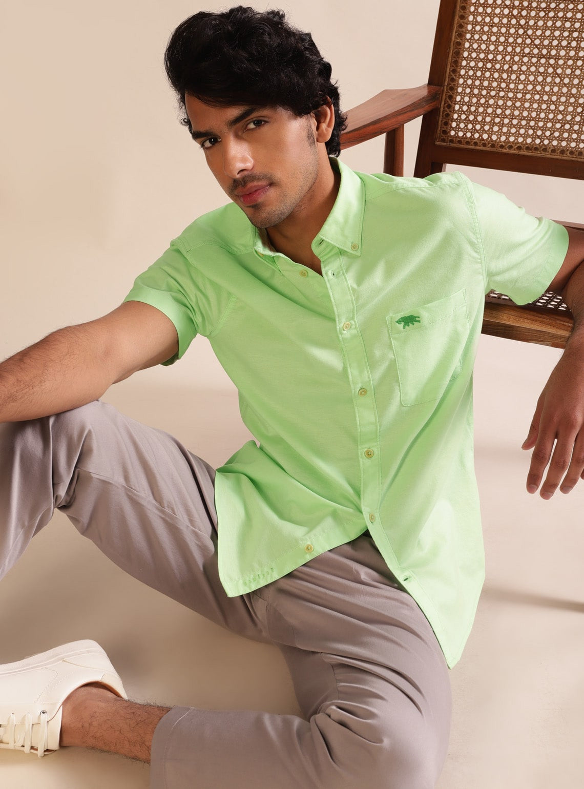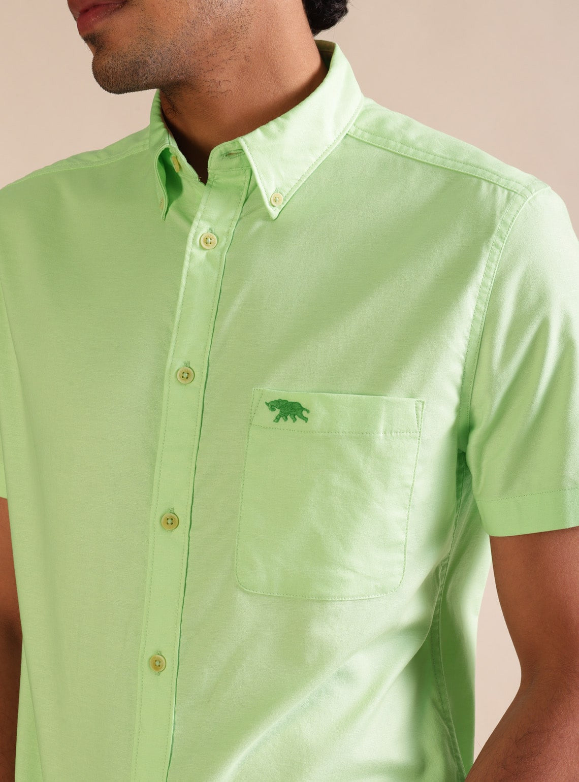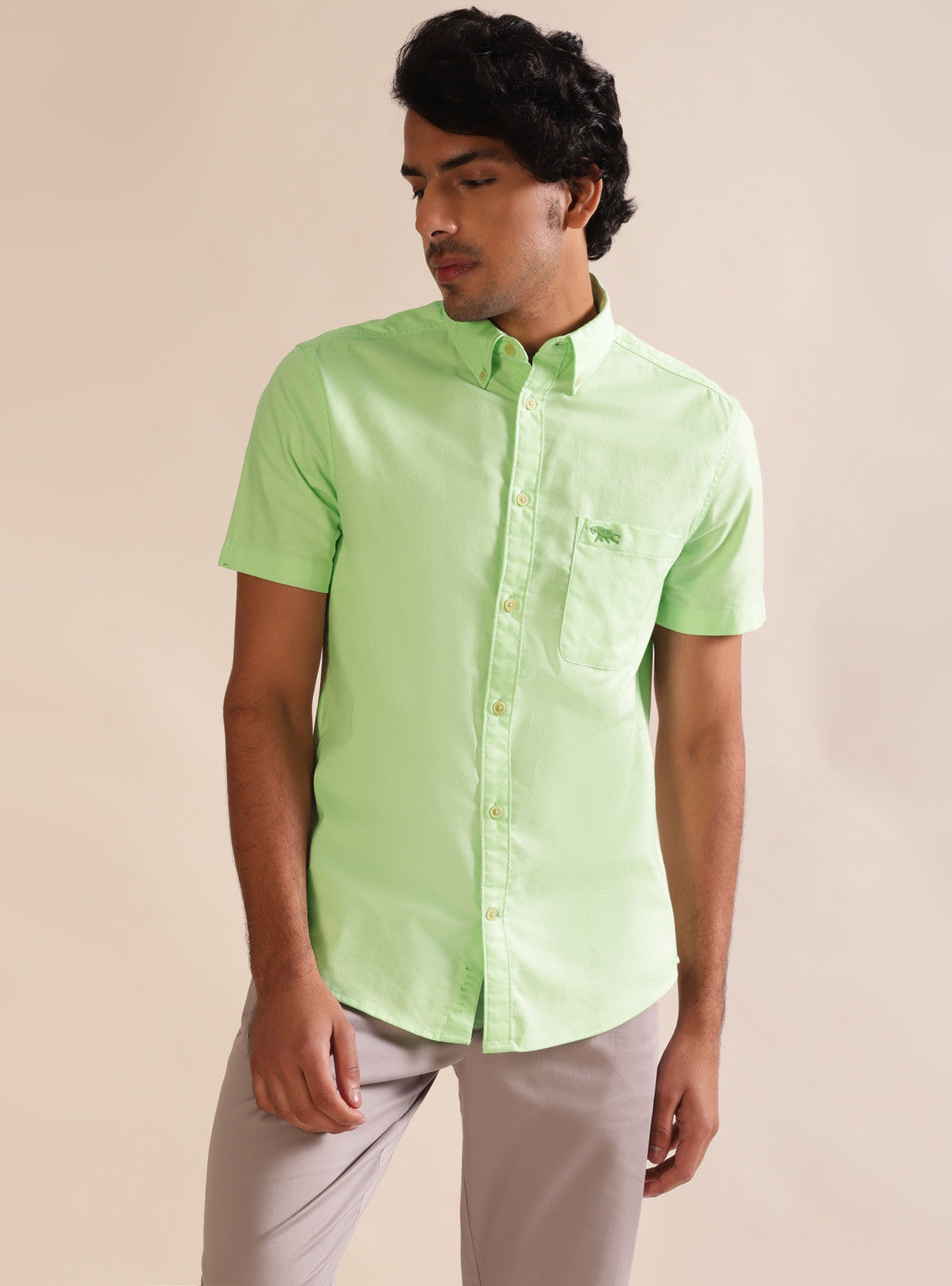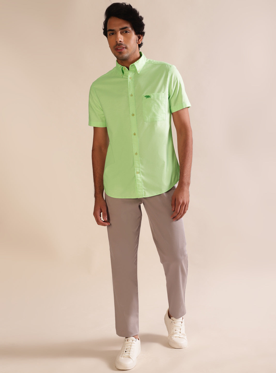 This shirt is meticulously crafted from a blend of rich Indian cotton in an Oxford weave, ensuring comfort and stretch. Designed in a half-sleeve silhouette, it not only provides sophistication but also features a button-down collar, & Rajan, the mark of Andamen.