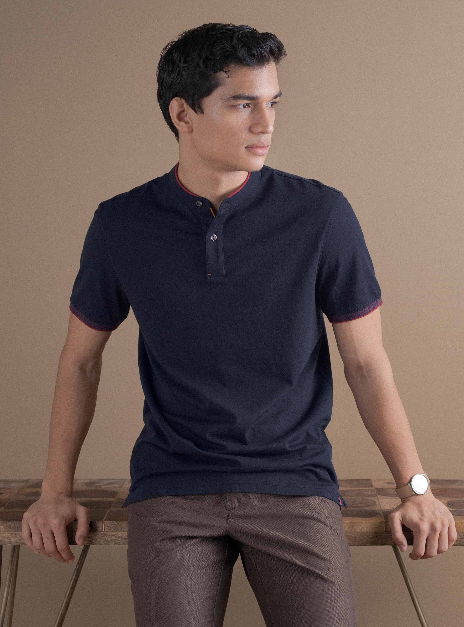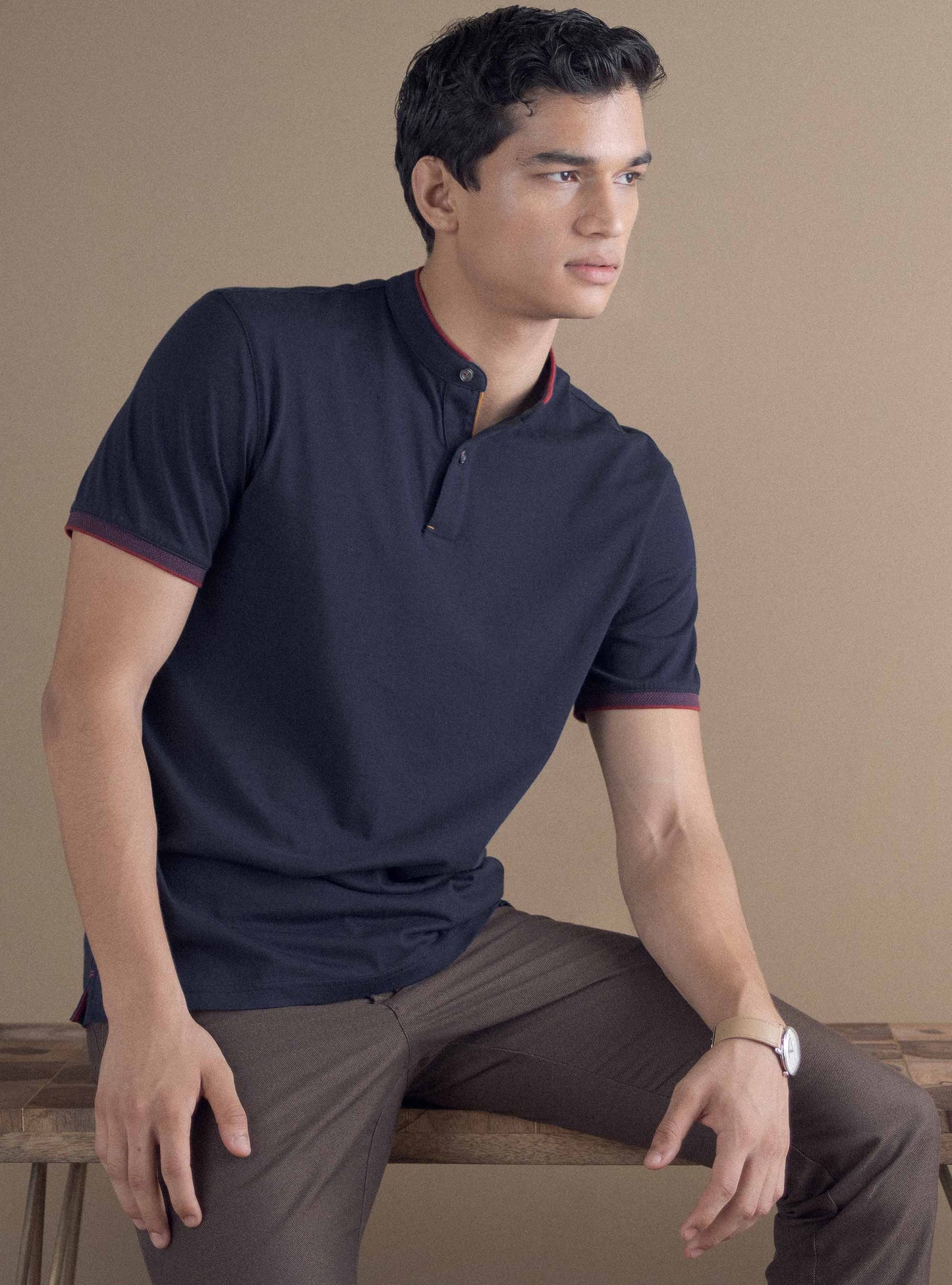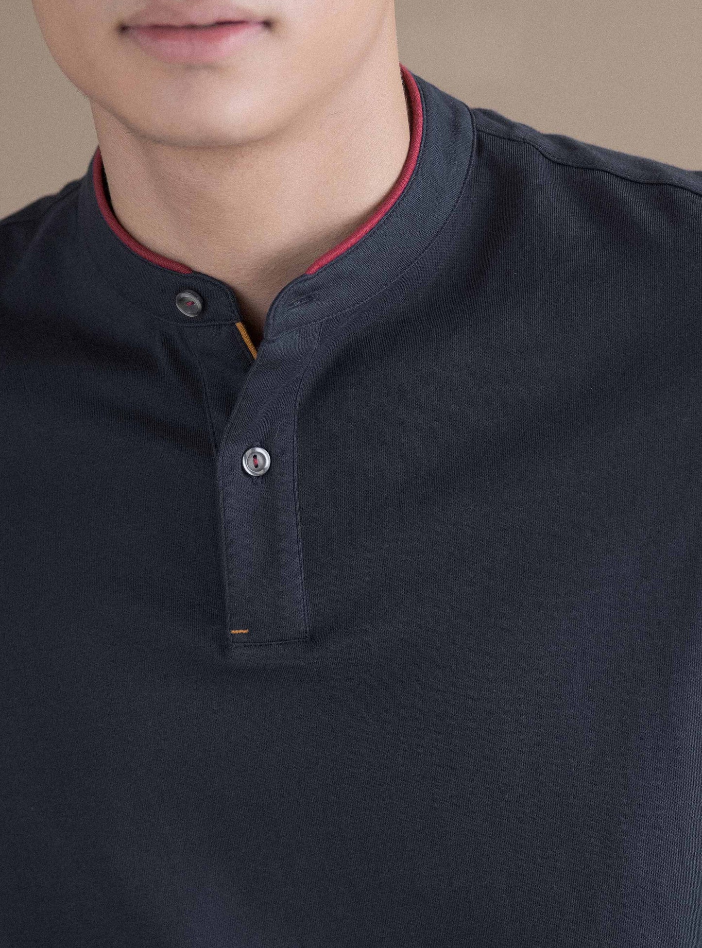 An easy, everyday collarless polo, enhanced with subtle details on the collar and sleeve ribs.