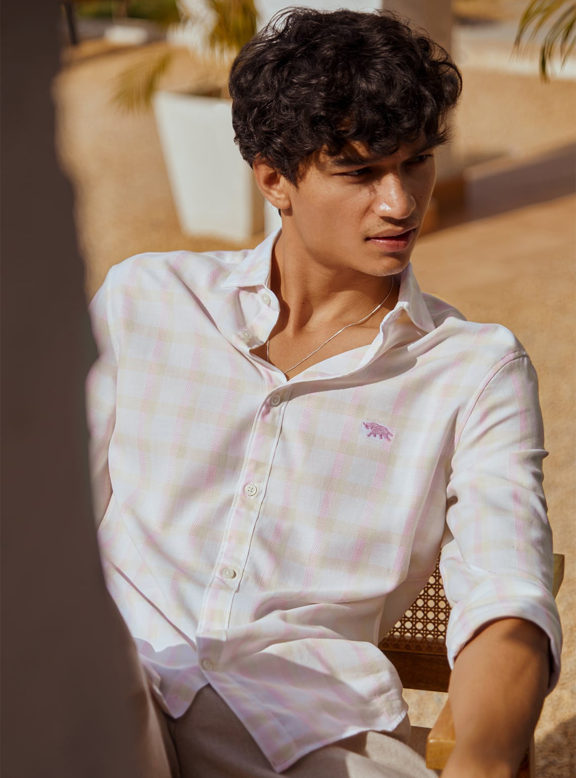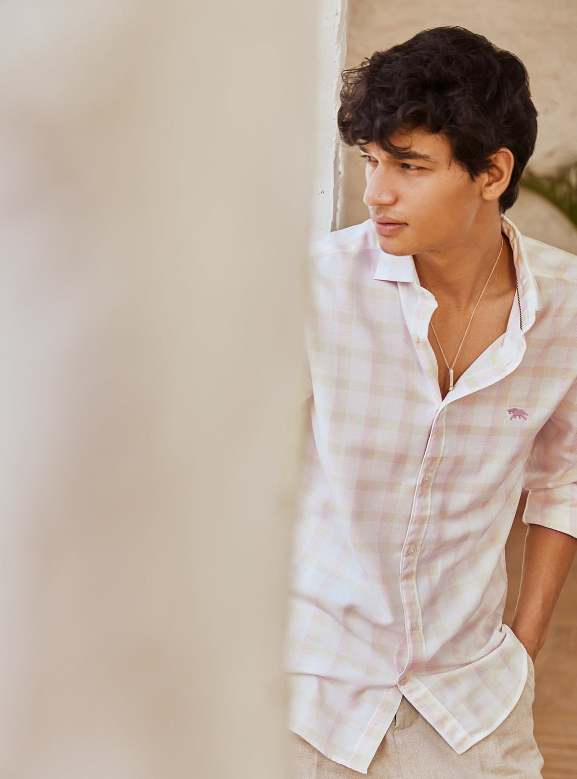 Timeless, Comfortable & Breezy in every sense of the word. Presenting a casual shirt, made entirely from a rich Indian cotton in a plain weave. Features a narrow cutaway collar & Rajan, the mark of Andamen.