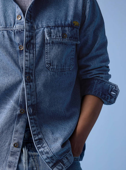 Presenting a timeless Indigo overshirt, expertly woven from rich Indian cotton in a classic right-hand twill weave. This weave ensures durability & comfort. The Indigo build allows the shirt to age beautifully with you. Features pocket play, & Rajan, the mark of Andamen.