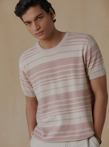 This crew is meticulously crafted from cotton in a honeycomb structure, ensuring comfort and durability. Designed in a half-sleeve silhouette, it not only provides sophistication but also features stripes, & Rajan, the mark of Andamen.