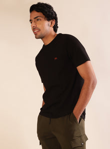 This crew is meticulously crafted from compact cotton in a single jersey structure, ensuring comfort and durability. Designed in a half-sleeve silhouette, it not only provides sophistication but also features a gold finish, & Rajan, the mark of Andamen.