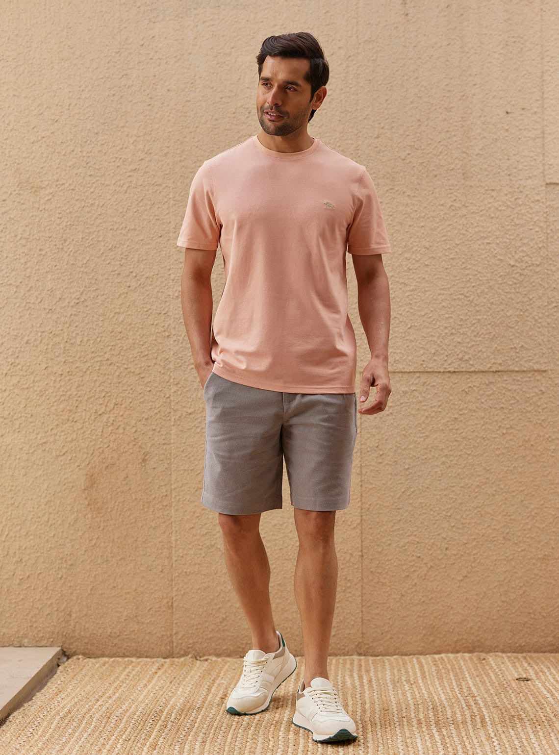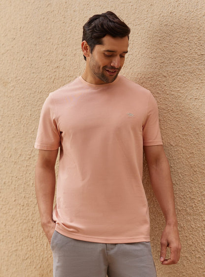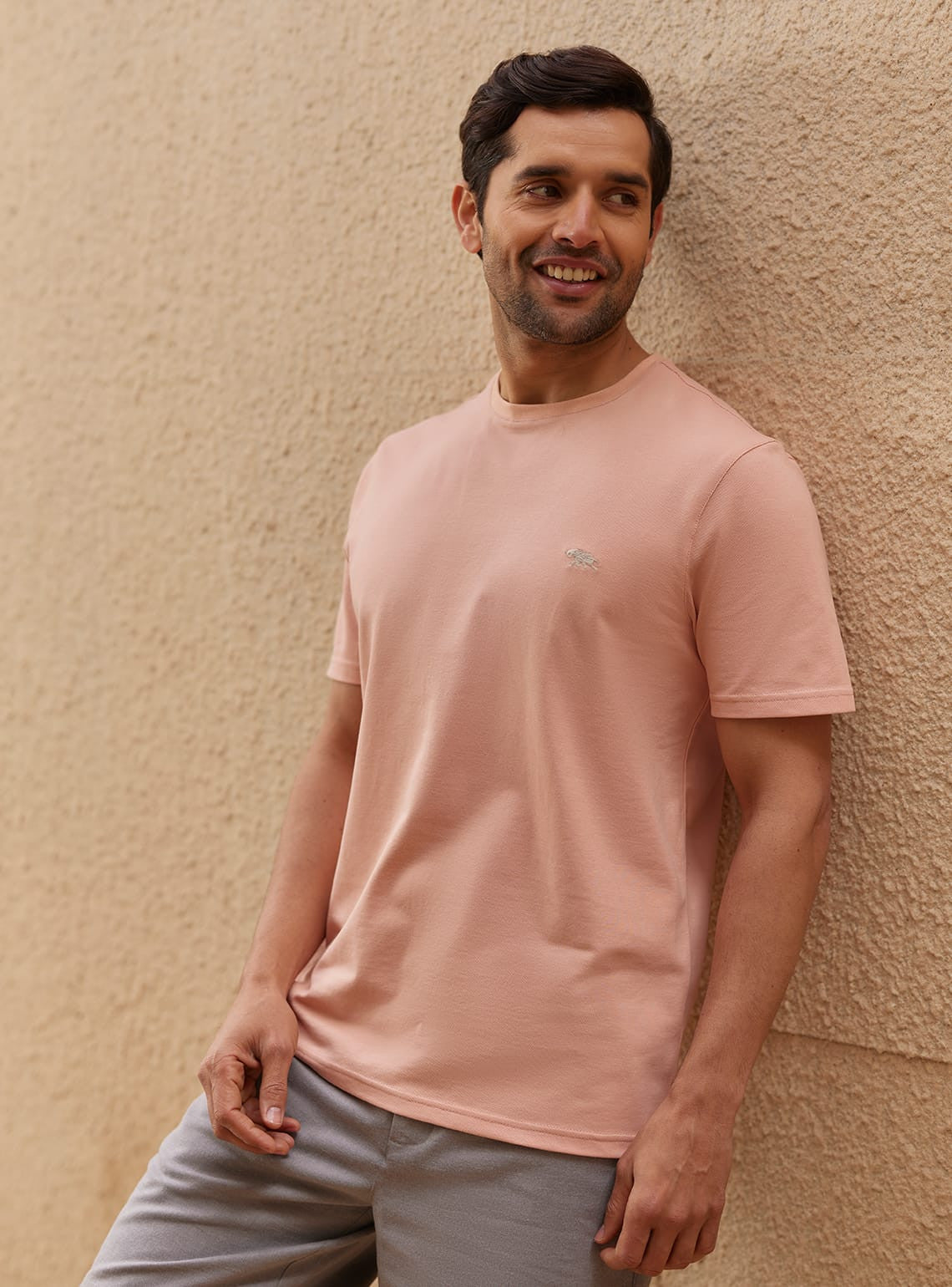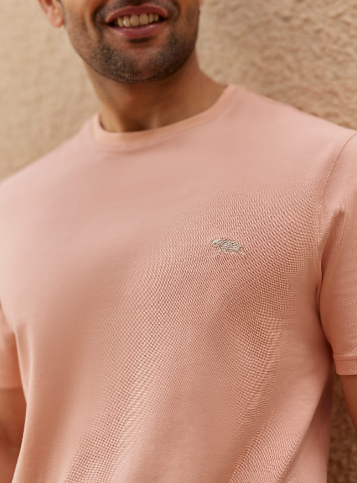 This crew is meticulously crafted from compact cotton in a single jersey structure, ensuring comfort and durability. Designed in a half-sleeve silhouette, it not only provides sophistication but also features a gold finish, & Rajan, the mark of Andamen.