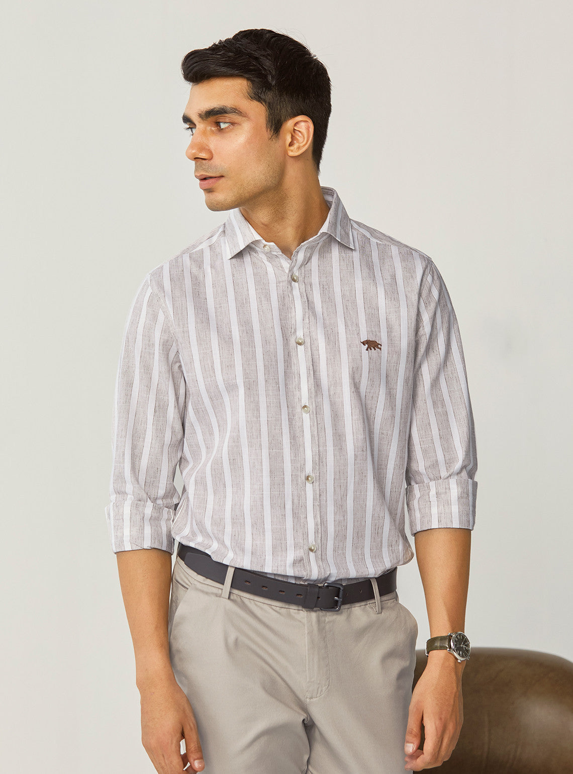 Khaki Men's Semi Formal Shirt