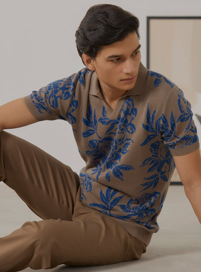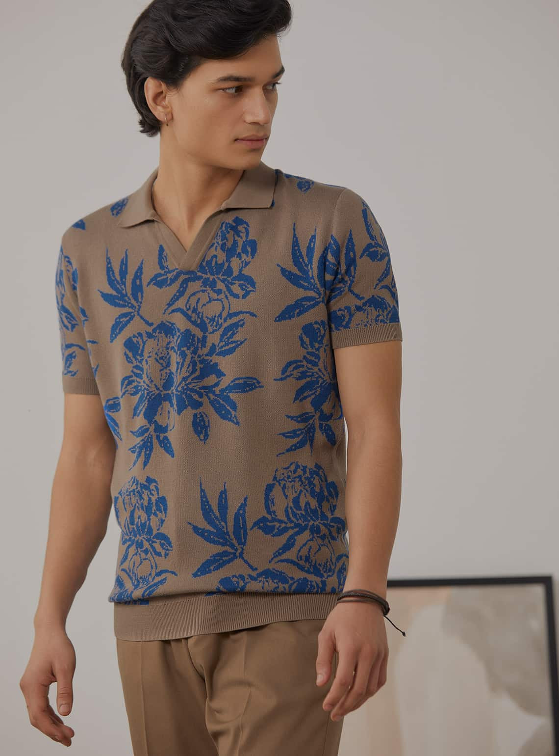 This polo is meticulously crafted from cotton and viscose ensuring comfort and durability. Designed in a half-sleeve silhouette, it not only provides sophistication but also features jacquard fabric, & Rajan, the mark of Andamen.