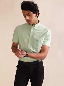 This shirt is meticulously crafted from cotton in a plain weave, ensuring comfort and breathability. Designed in a half-sleeve silhouette, it not only provides sophistication but also features a button-down collar, & Rajan, the mark of Andamen.