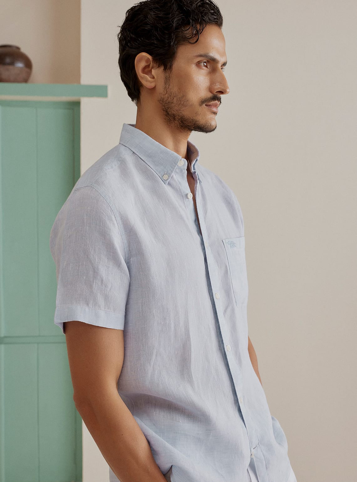 Presenting a shirt that's good on you, & our planet. Crafted from one of Earth's friendliest fibres, European linen, which comes from Belgian flax, a supercrop that requires zero manual irrigation, is 100% bio-degradable & enriches the soil as it grows. Lightweight, naturally breathable & cool to touch, this timeless shirt is softer & more durable than regular linen. Features a button-down collar.
