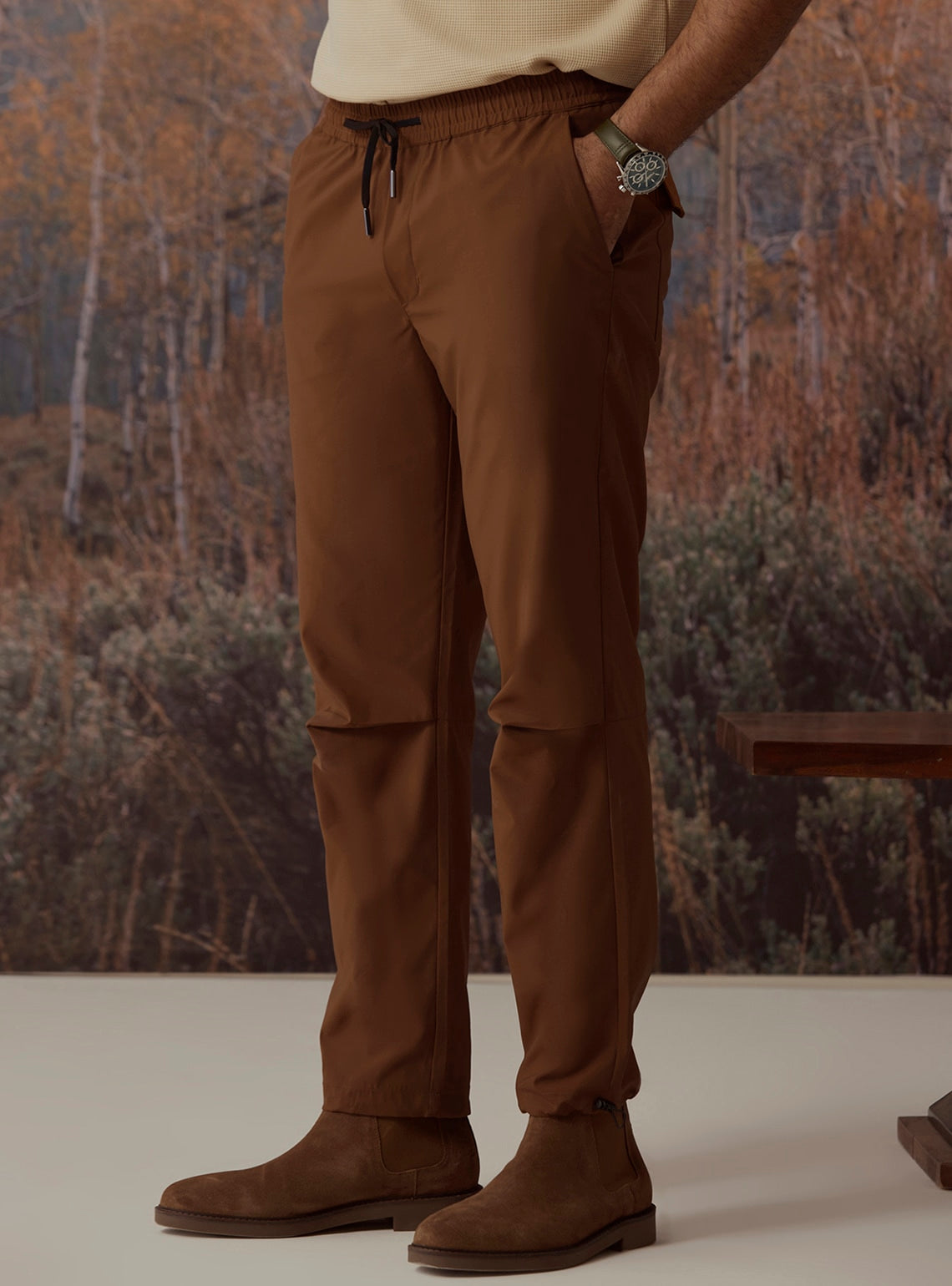A new addition to the Escape collection—ultra-light, durable, and built for ease. Crafted from 100% polyester, this Jogger delivers a clean, structured look with effortless comfort. Designed in a regular fit, it moves with ease while keeping things sharp. Functional pockets add utility without the bulk.