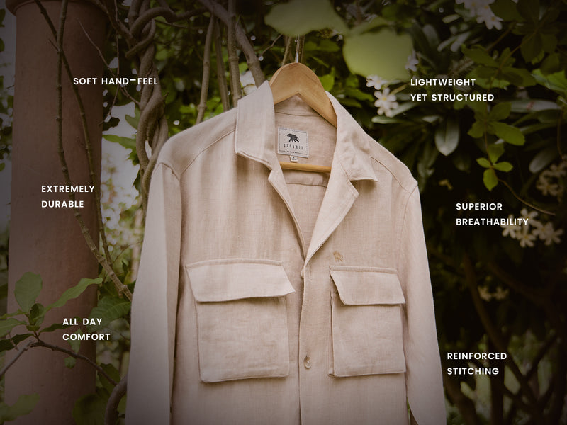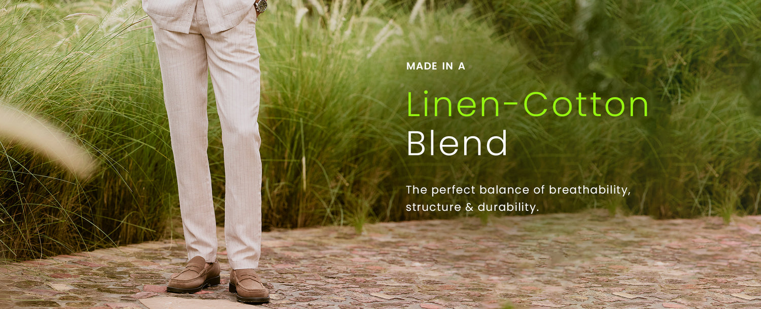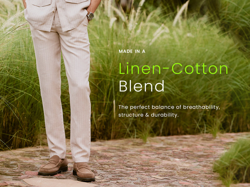 Made from a mindful blend of linen and cotton, these trousers are effortless, breathable, and built for everyday movement. The linen—made from Belgian flax—grows with rainwater alone, while cotton brings softness, structure, and durability to the mix.