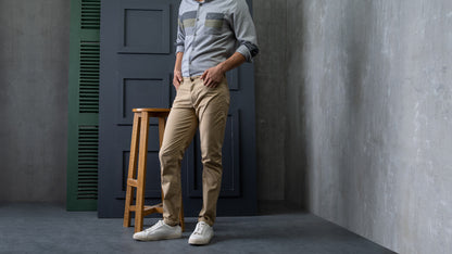 Presenting a seriously light weight, stretch enhanced companion in a beige that goes with everything. Simple, yet distinguished with subtle details and composed in a modern slim fit that sits perfectly atop it all: sneakers to oxfords. These are chinos you'll want to pull out from your wardrobe and wear everyday.