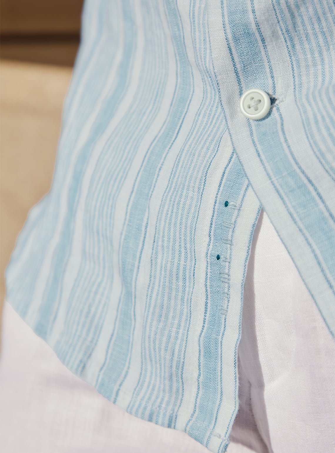 Presenting a shirt that's good on you, & our planet. Crafted from one of Earth's friendliest fibres, Belgian linen, that comes from Belgian flax, a supercrop that requires zero manual irrigation, is 100% bio-degradable & enriches the soil as it grows. Lightweight, naturally breathable & cool to touch, this timeless shirt is softer & more durable than regular linen. Features Rajan, the mark of Andamen.