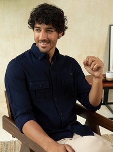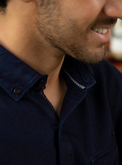 Presenting a timeless indigo shirt, made entirely from a rich Indian cotton, in a mid-weight fabric. This classic garment is enzyme washed to achieve the right color tone, richness & depth. This process breaks down the garment, making it super soft & giving it a gorgeous faded look. Your Indigo shirt will fade with each wash, ageing beautifully over time. Features Rajan, the mark of Andamen.